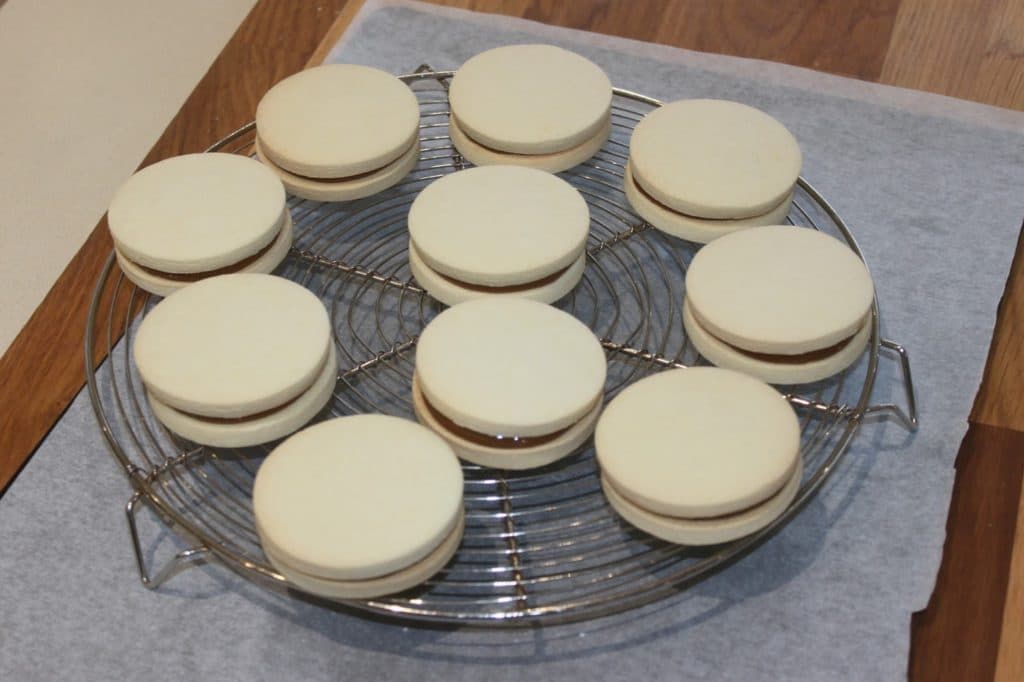- Faites cuire à 165°C pendant 17 minutes. Les alfajores doivent rester blancs.