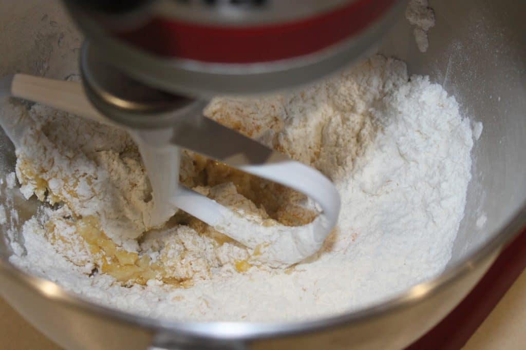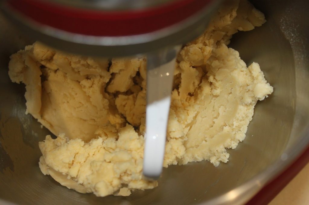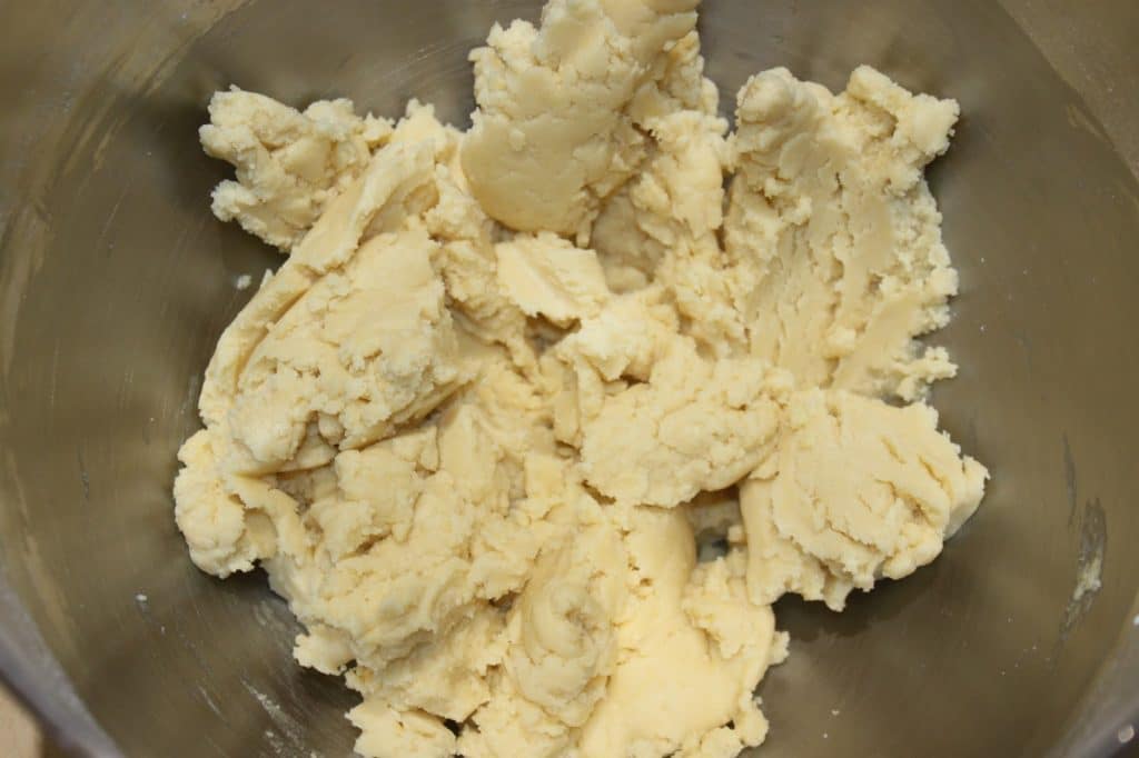 - Versez les deux cuillerées à soupe d’eau, puis mélangez jusqu’à ce que la pâte s’agglomère.