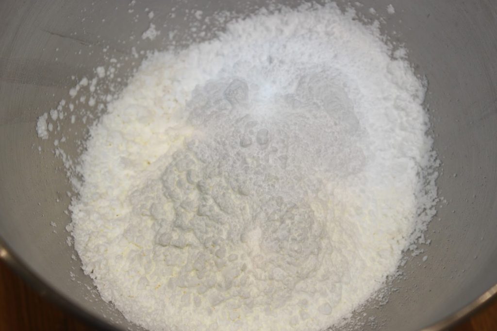 - Placez la farine, la maïzena et le sucre glace dans la cuve de votre robot ou dans un récipient.