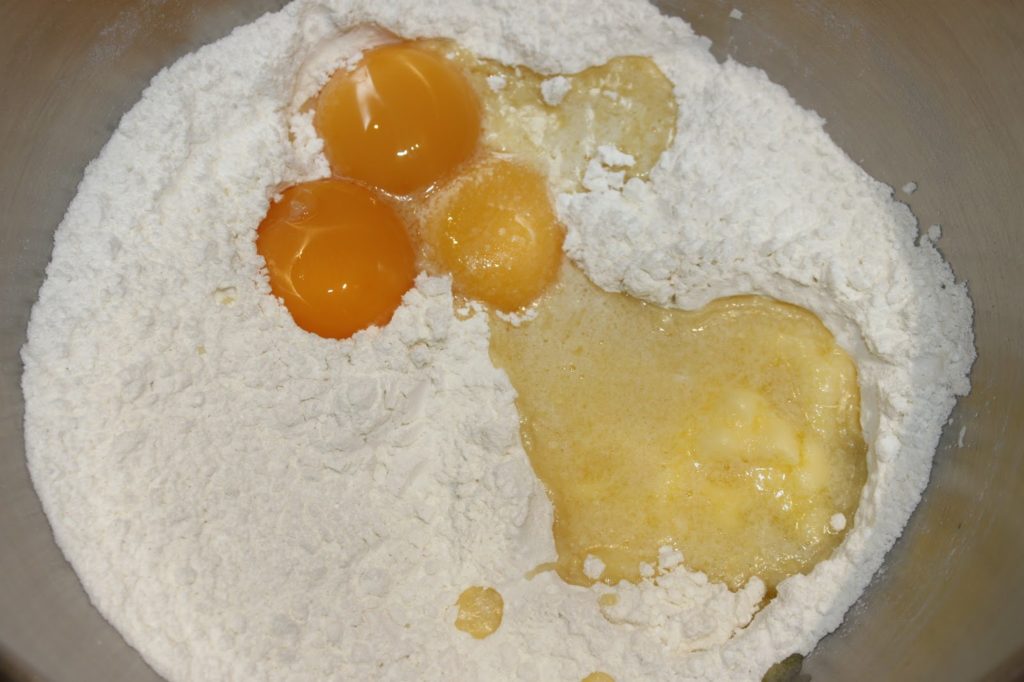 Mélangez puis ajoutez les jaunes et le beurre fondu.
