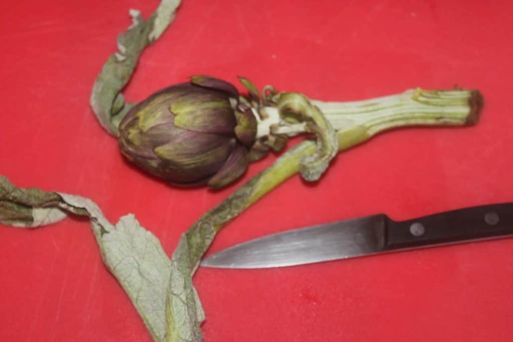 - Une fois cela fait, épluchez à l’économe la base de l’artichaut.