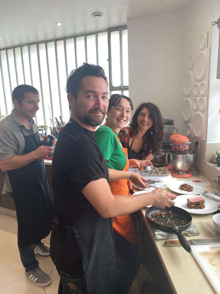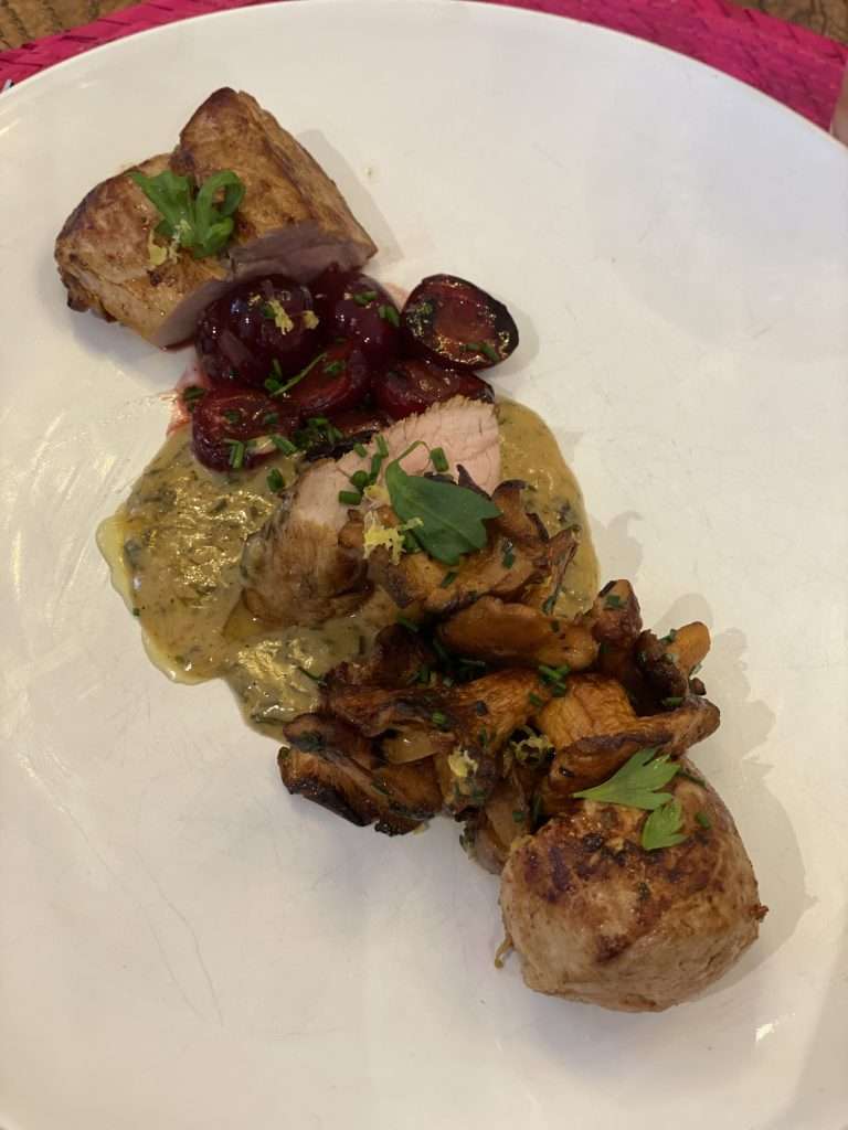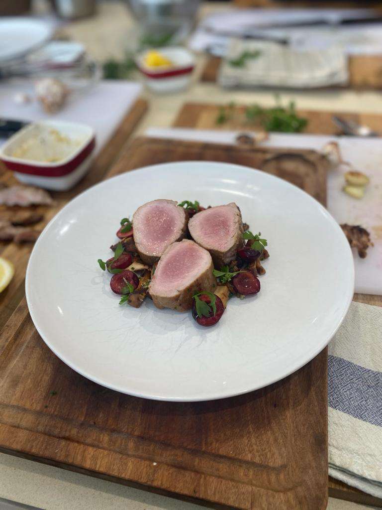 Il y a peu, un évènement autour de la viande de porc a été organisé dans mon atelier avec la finaliste de Top Chef, Alexia Duchêne, Julien de French Naked Chef et moi-même. Chacun a pu tirer au sort quelques personnes via un un jeu sur nos réseaux (chacun devait avoir fait un test Covid ou être vacciné pour cuisiner et manger ensemble). Merci à Let’s Talk About Pork pour ce déjeuner où nous avons fait un filet mignon, chanterelles, cerises fraiches et crème à la civèche, recette au top d’Alexia !