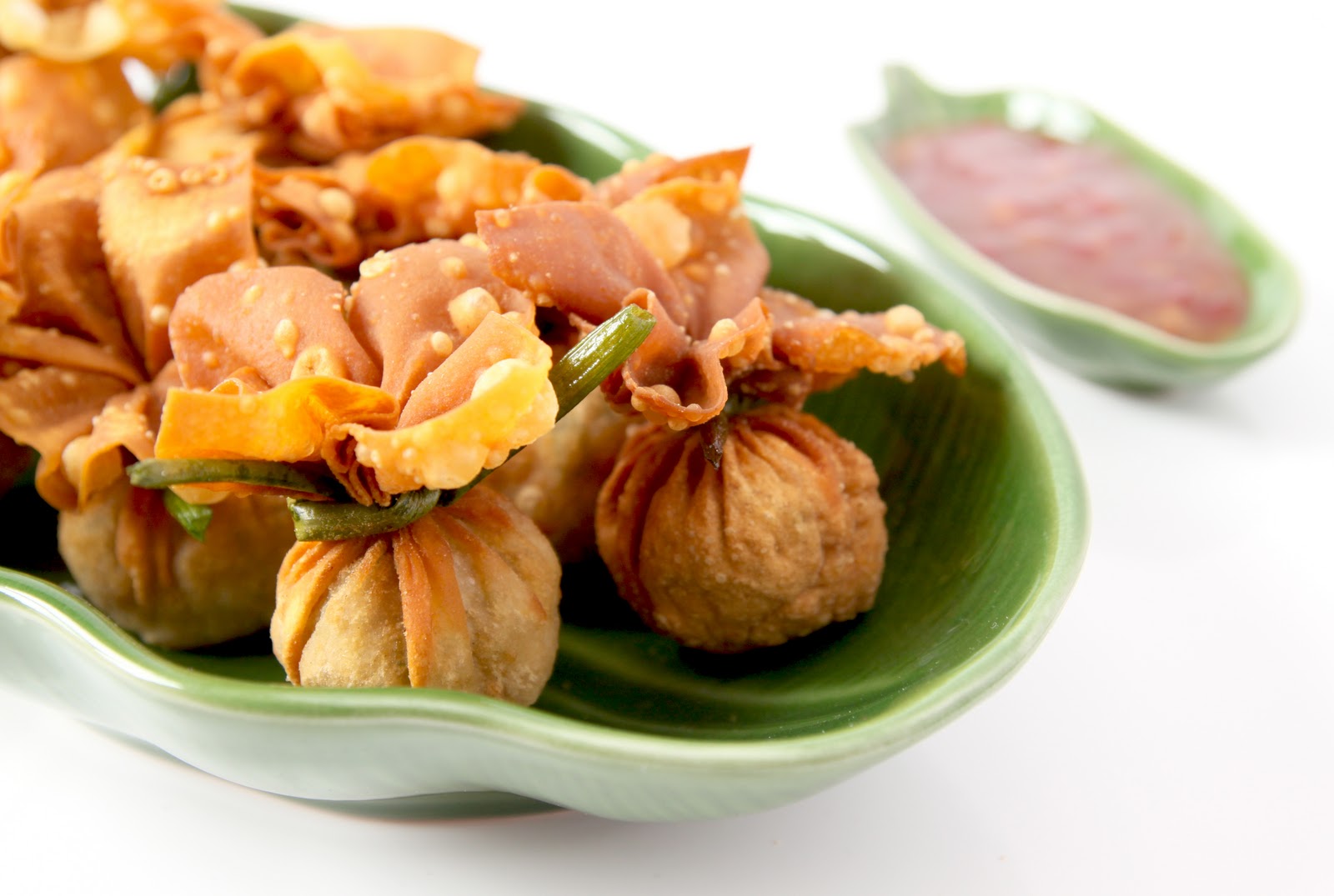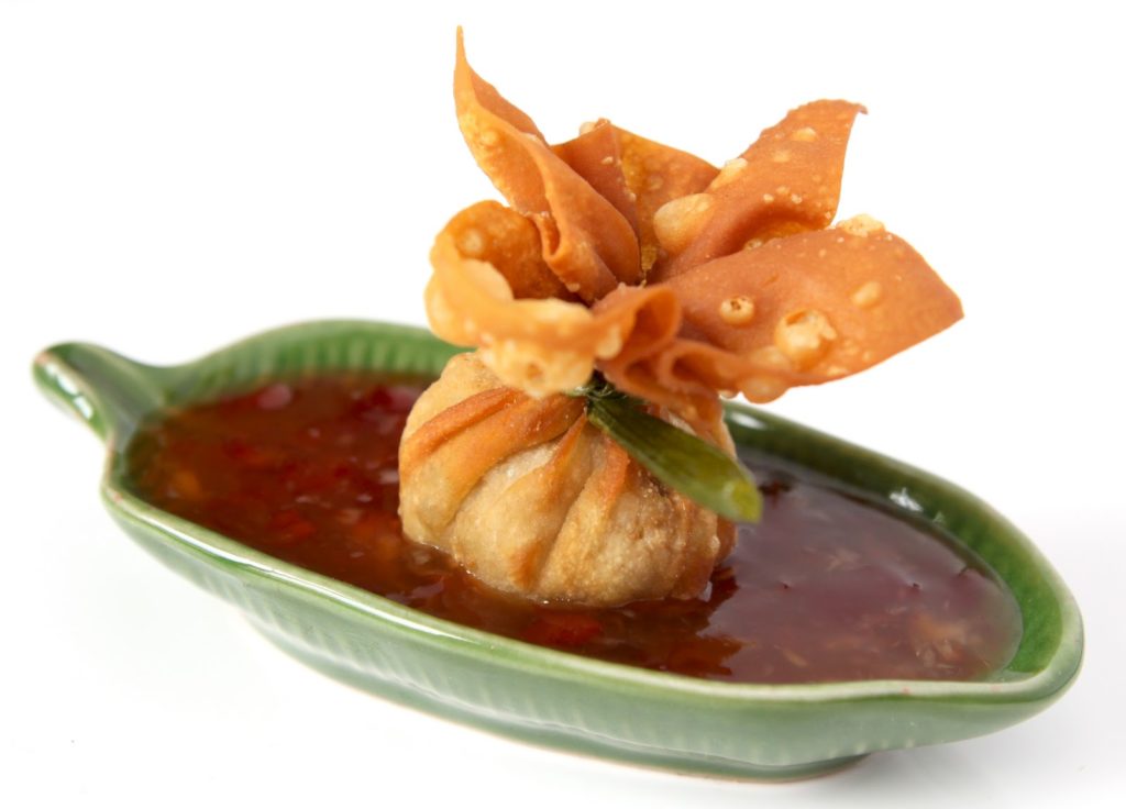 Le ballotin frit au porc et feuilles de kaffir est très croustillant, parfumé, très légérement pimenté. Avec un mixeur, il suffira de quelques minutes pour réaliser la farce. Le pliage est très simple et l’effet grandiose! Avec la sauce pimentée et sucrée, ces ballotins sont de véritables petites merveilles. À essayer d’urgence!