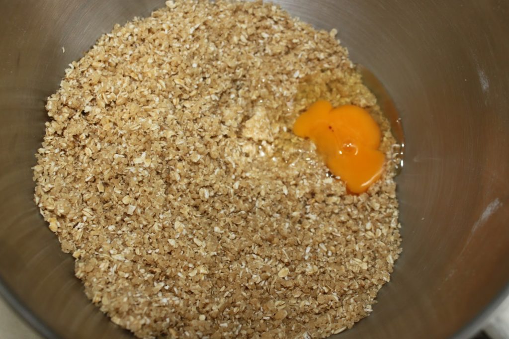 - Mélangez avec la feuille ou à la main pour enrober les flocons de beurre. Ajoutez l’œuf.