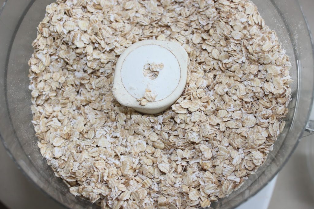 Mixez un peu les flocons d’avoine. Ne les réduisez pas en poudre trop fine.