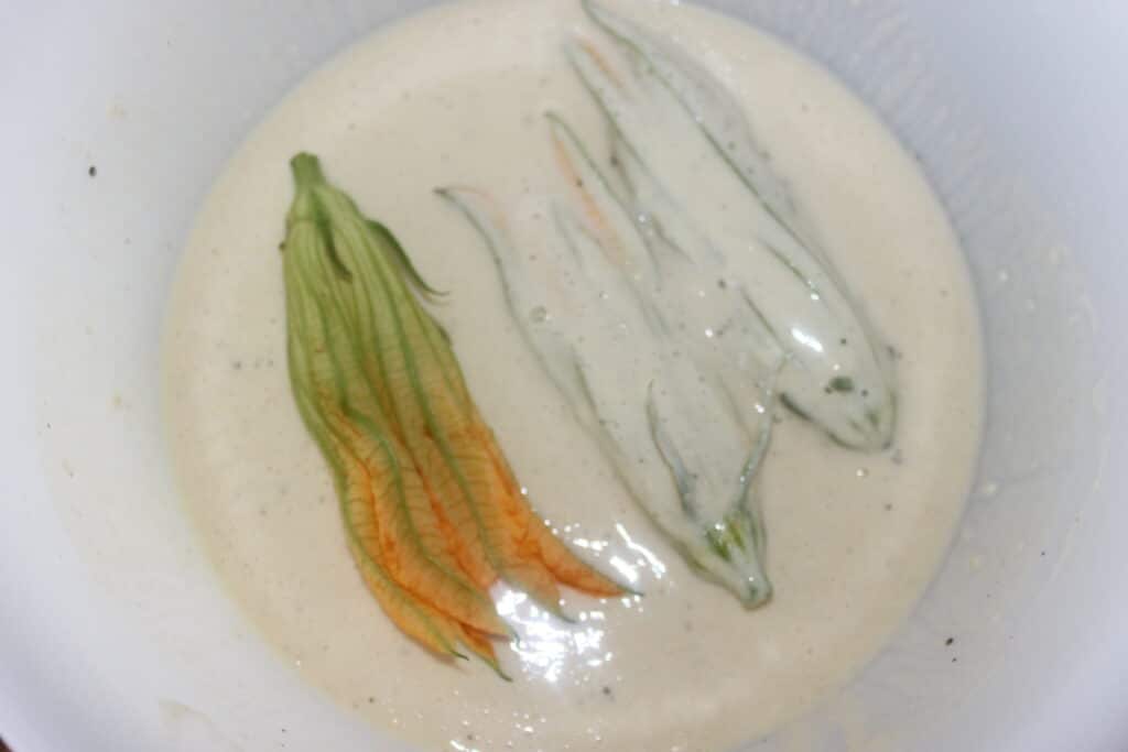 - Plongez les fleurs dans la pâte qui est assez liquide.