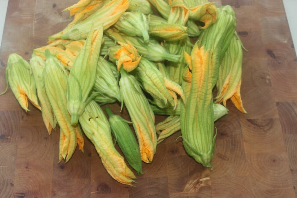 Aquí están las flores de calabacín. Asegúrate de que están vacías de todos los bichos.