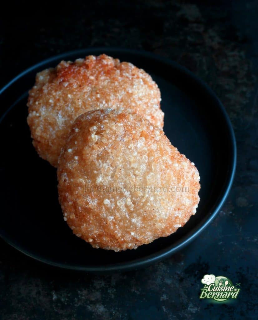- Cette fois vous pouvez les retourner sans souci. Les beignets doivent être bien colorés et croustillants.