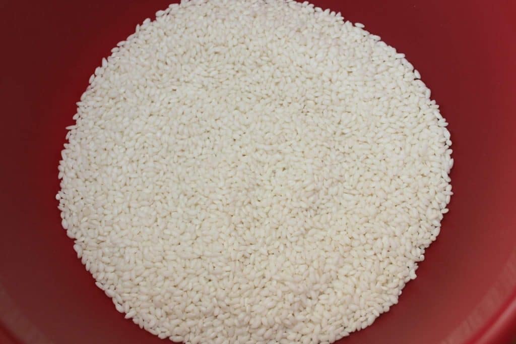- Le lendemain, rincez, puis laissez s’égoutter le riz dans une fine passoire. Placez-le dans un rice cooker avec les 240g d’eau et le sel. Sans rice cooker, mettez le riz et l’eau (salée) dans une casserole. Portez à ébullition, baissez le feu puis laissez cuire avec un couvercle une vingtaine de minutes.