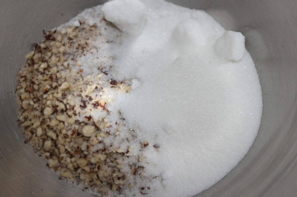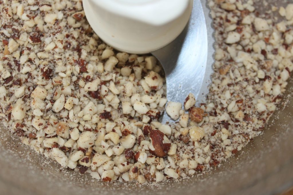 - Mettez les noisettes entières dans un mixeur pour les réduire en poudre très grossière.