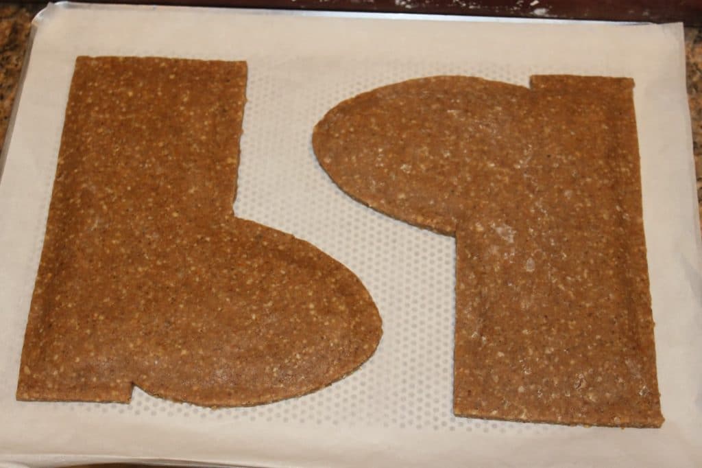 Étalez la pâte assez finement (5mm d’épaisseur) en vous assurant d’avoir la surface nécessaire pour une botte.