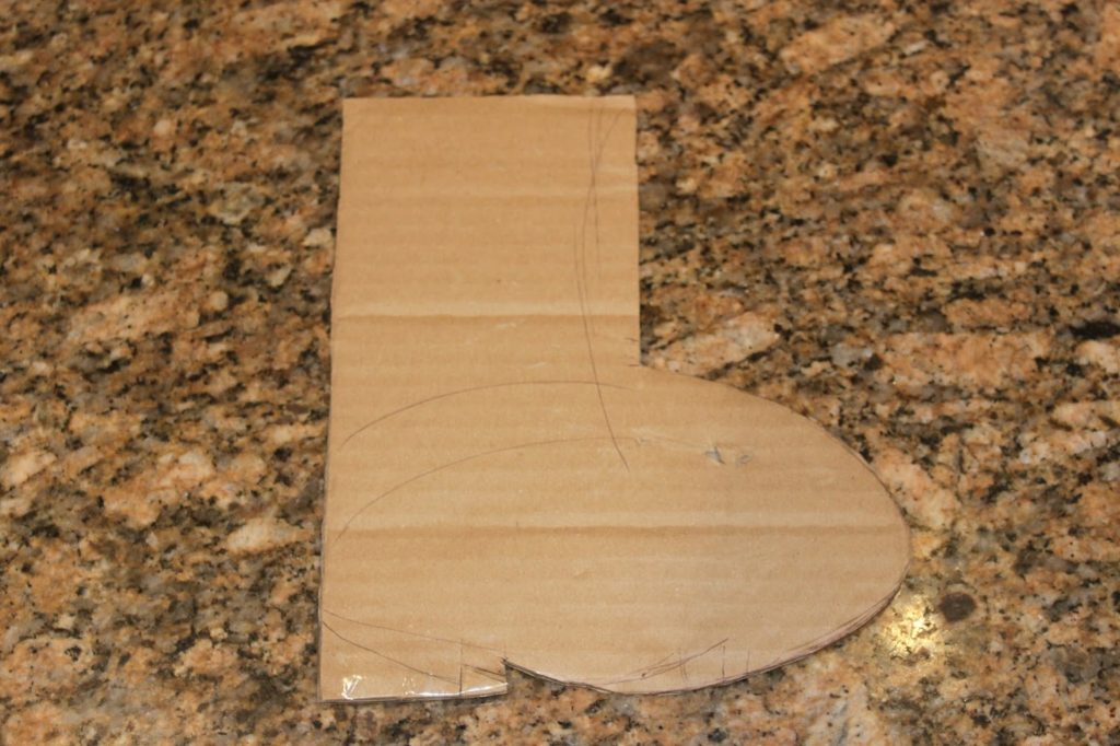 - Pour la botte, j’ai dessiné sur un carton que j’ai ensuite coupé d’après la forme dont je me souvenais. Vous pouvez bien sûr réaliser n’importe quelle forme que vous souhaitez !