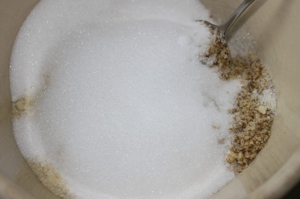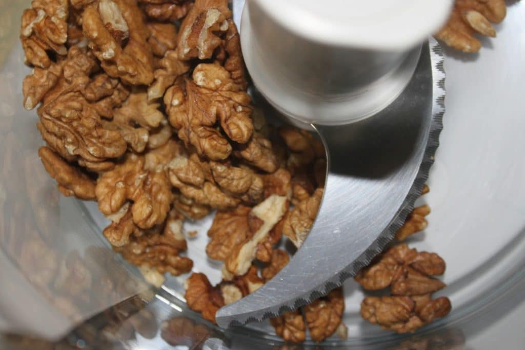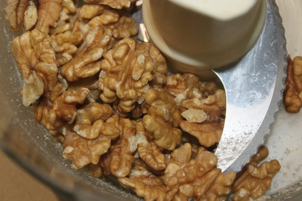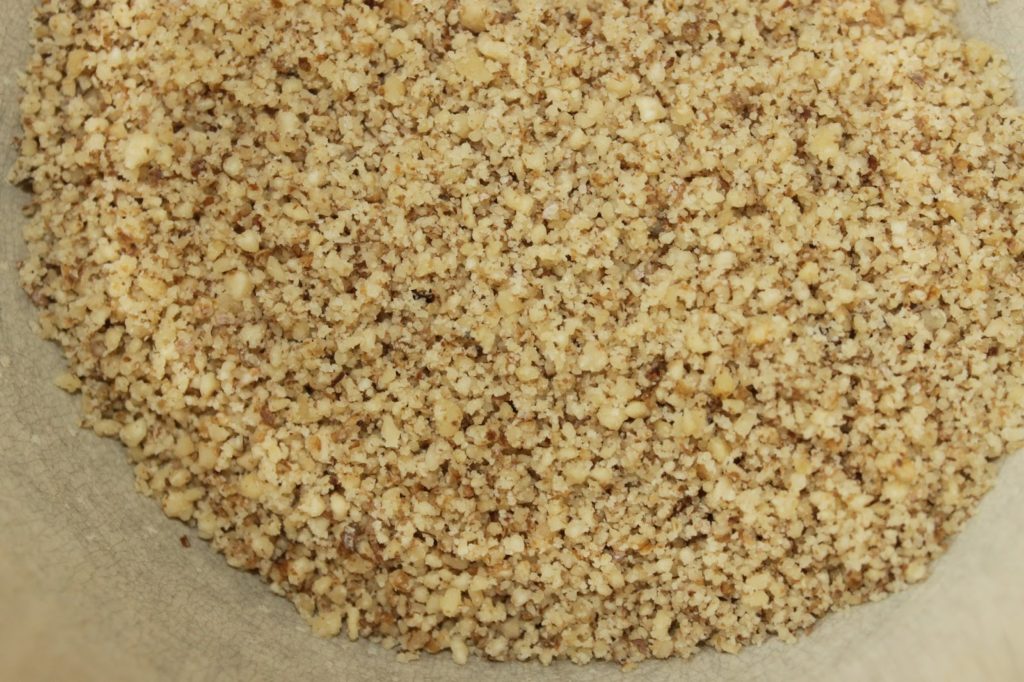 - Réduisez aussi les noix en poudre grossière.