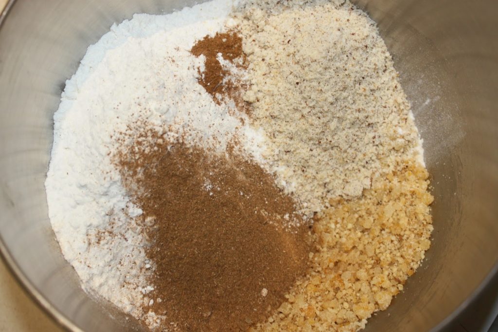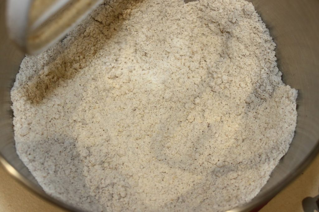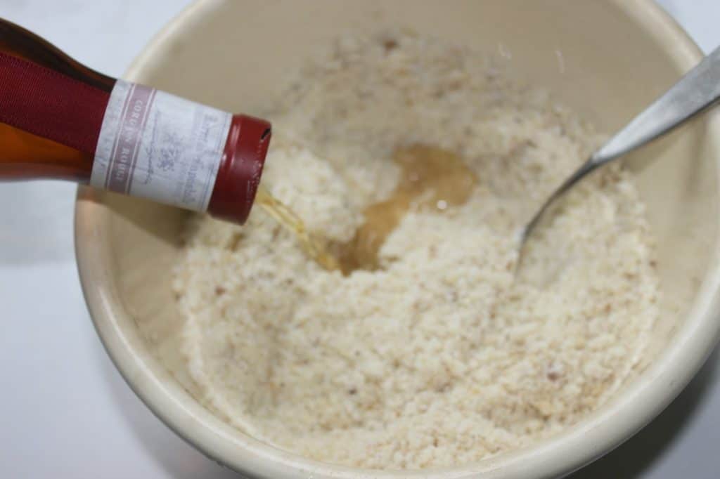 - Mélangez la poudre d’amande et les noix.