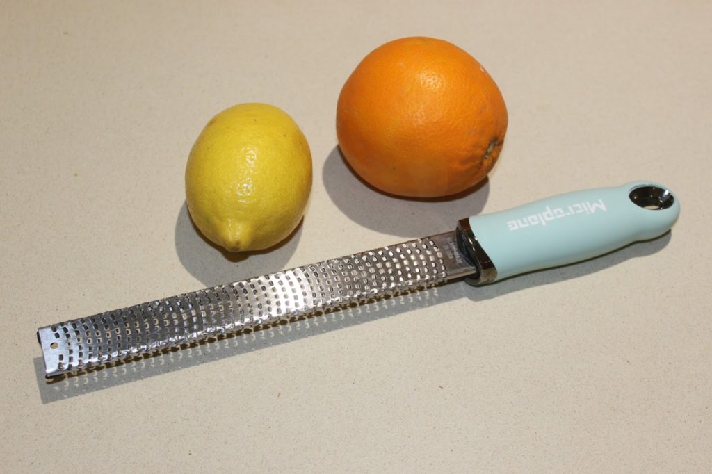 - Dans le récipient, ajoutez le zeste d’une orange et d’un citron bio.