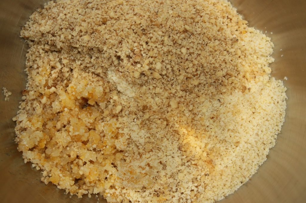 Réduisez aussi les noix en poudre grossière.