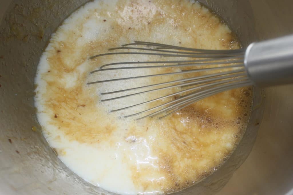 Mezclar y añadir la leche.