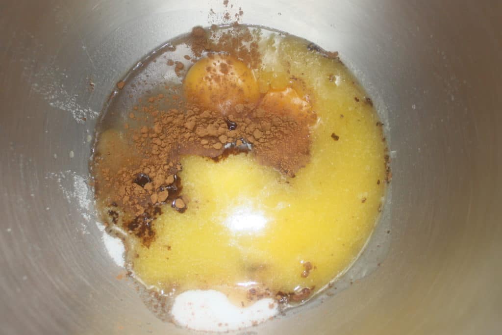 Poner en un bol los huevos, el azúcar, la canela, la vainilla y la mantequilla derretida.