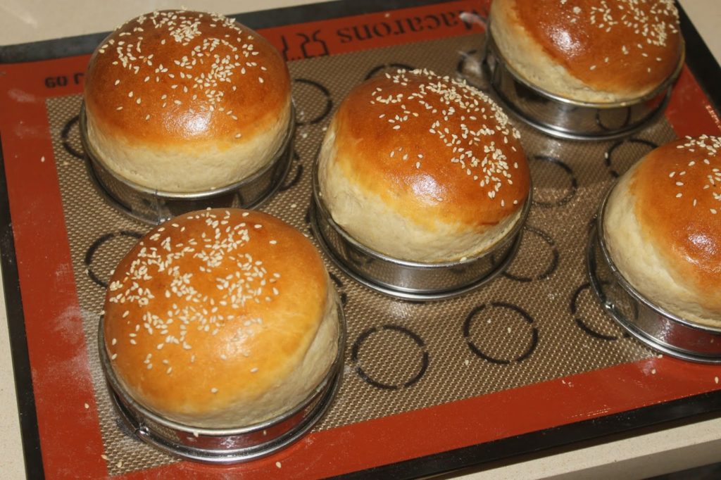 J’adore les hamburgers, mais je suis très difficile. Hors de question pour moi d’aller dans un fast food. Un bon restaurant de burgers oui, mais c’est encore à la maison que je les préfère ! J’avais écrit une recette de buns dans mon livre « Mon grain de sel », Flammarion 2015 et une version totalement végane dans « Végéterrien », Flammarion 2017. Je vous propose cette fois une version archi moelleuse qui pourra être dévorée en hamburger ou simplement au petit déjeuner en y ajoutant pourquoi pas des pépites de chocolat. Si on appuie sur les buns, ils sont tellement moelleux, qu’ils reprennent leur forme comme si de rien était !
