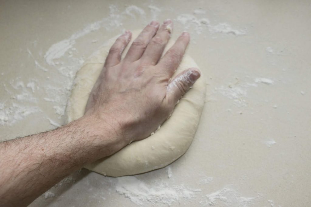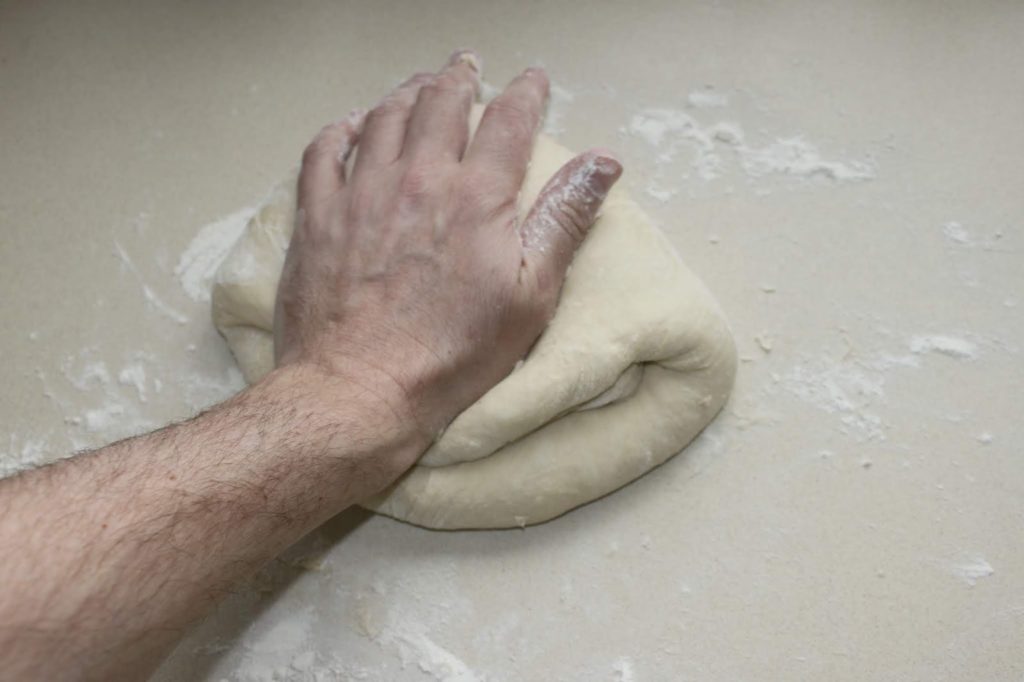 - Pétrissez à la main en puisant au besoin dans les 50g de farine.