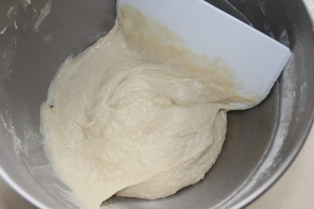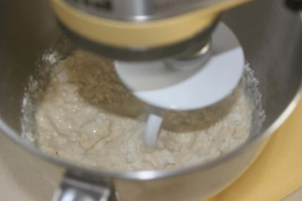 - Mélangez avec le crochet pétrisseur.