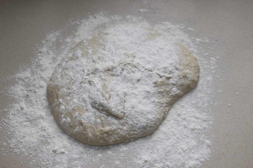 - Versez sur un plan de travail fariné. Pour cela, réservez au maximum 50g de farine pour travailler.