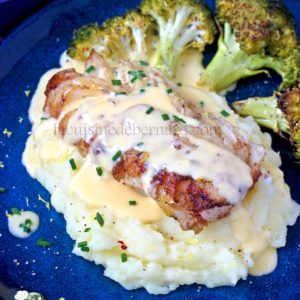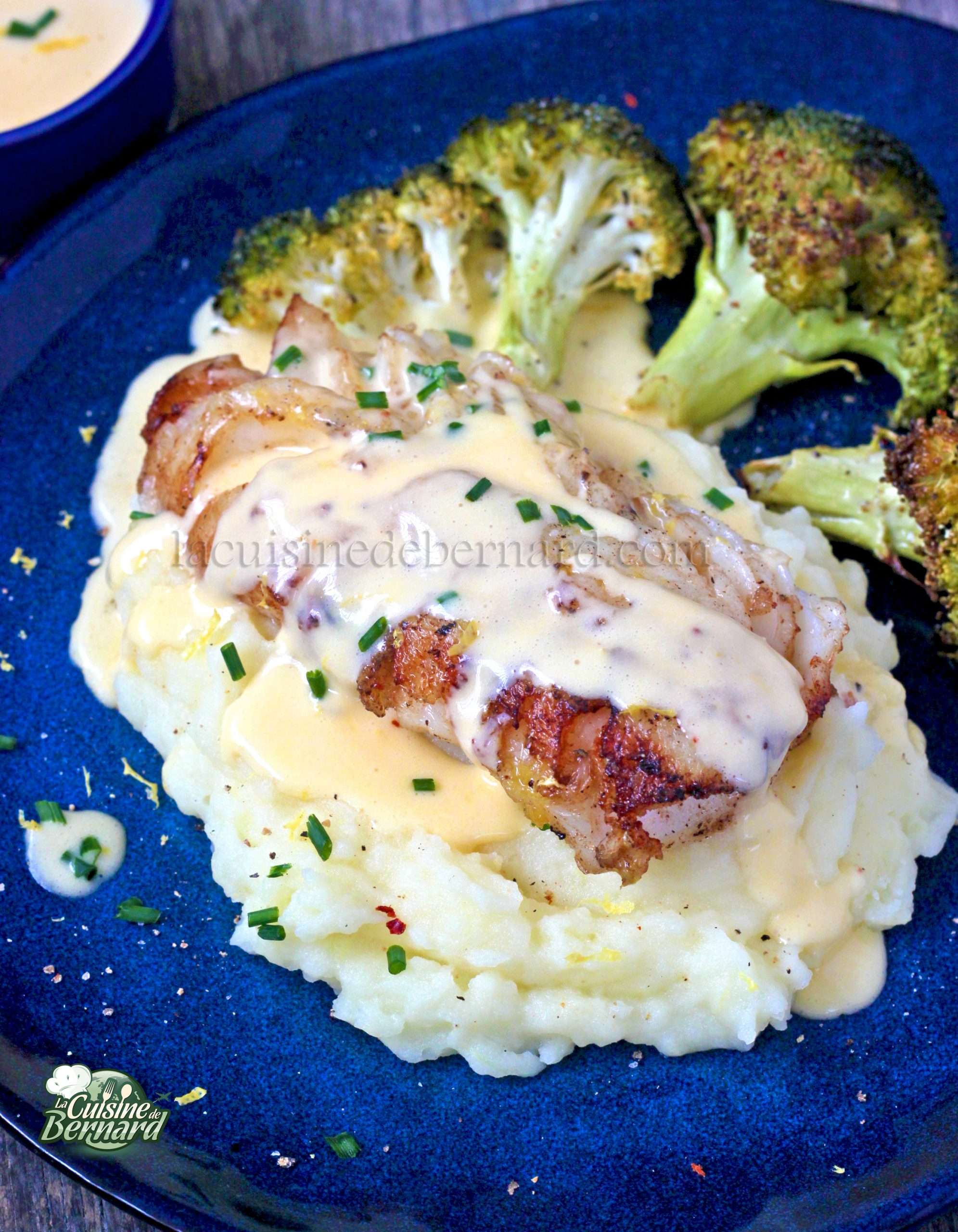 Cabillaud Poêlé, sauce hollandais, purée maison et brocoli grillé au four