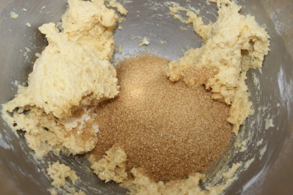 Mélangez avec la feuille du robot ou à la cuillère. Versez le sucre roux et mélangez de nouveau.