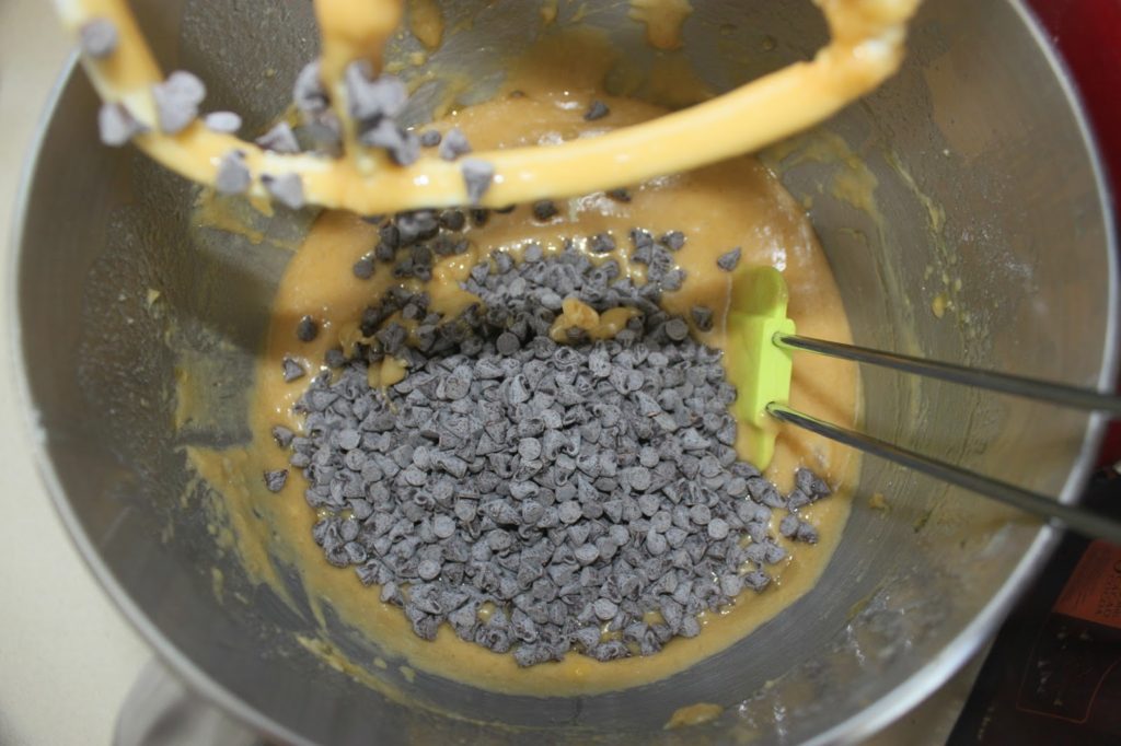 Mélangez et versez les pépites de chocolat.
