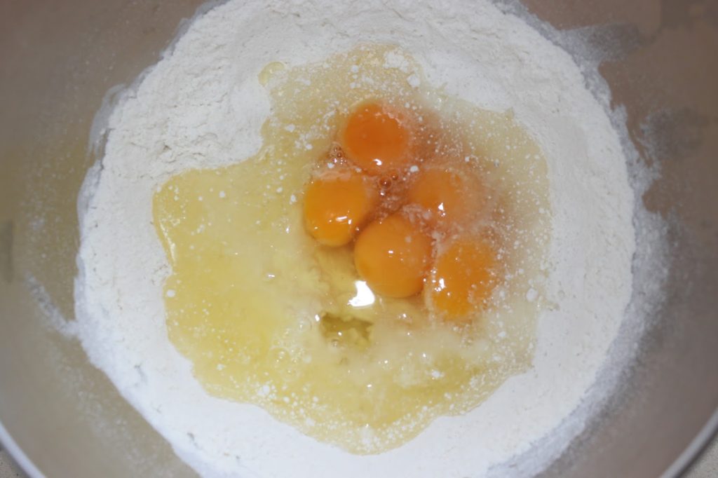 Mélangez puis ajoutez les 250g d’œuf (en gros 5 œufs).