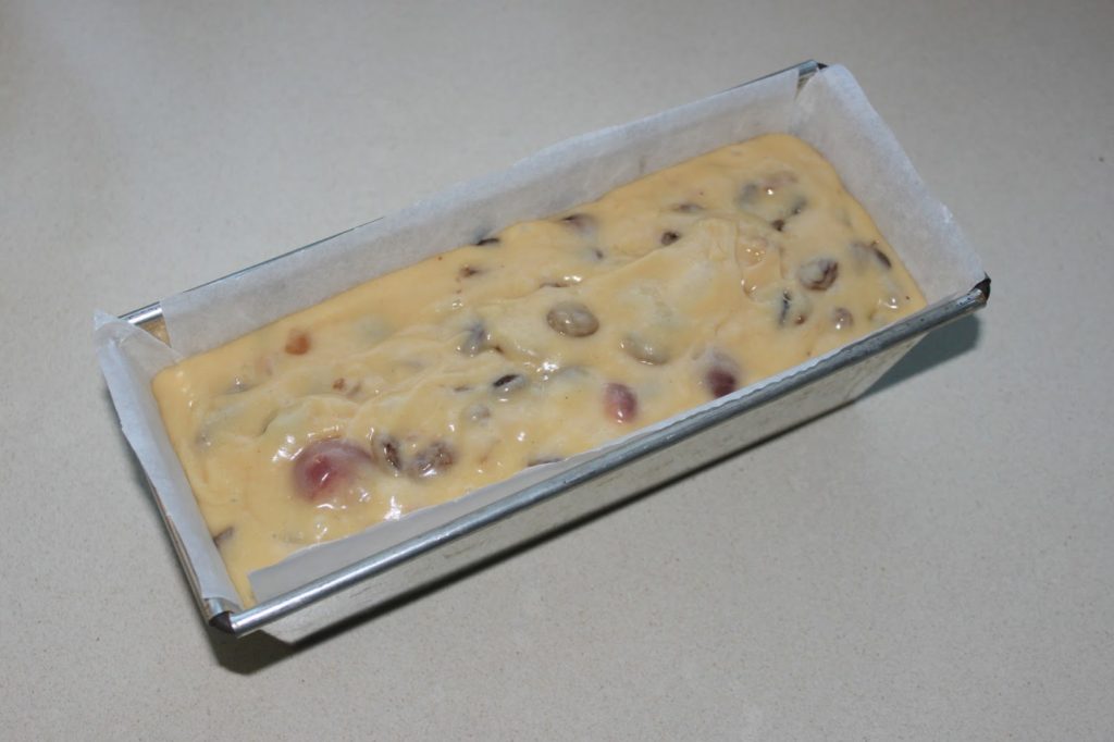 Versez dans le moule à cake chemisé de papier sulfurisé.