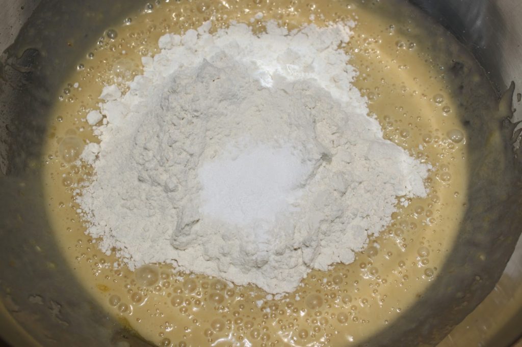 Mélangez bien pour avoir une pâte lisse et homogène. Versez dans un moule de 24cm chemisé de papier sulfurisé.