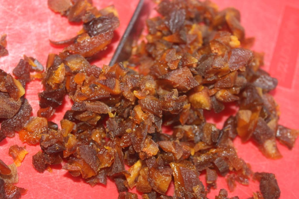 Hachez les abricots secs.