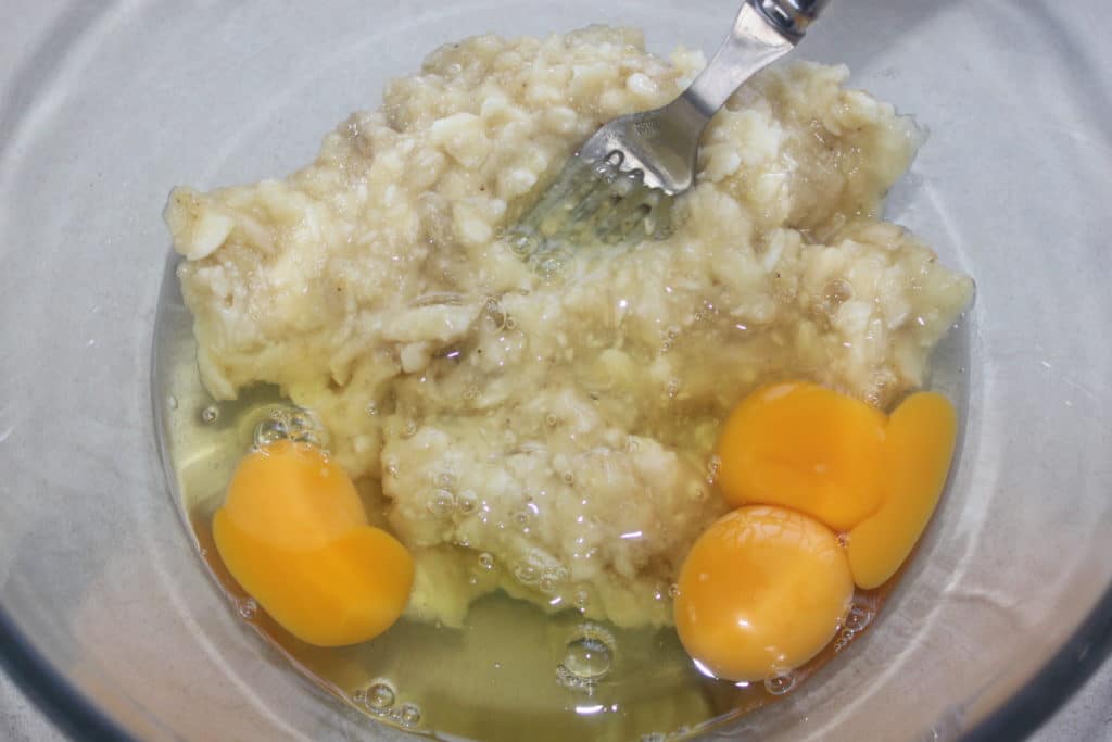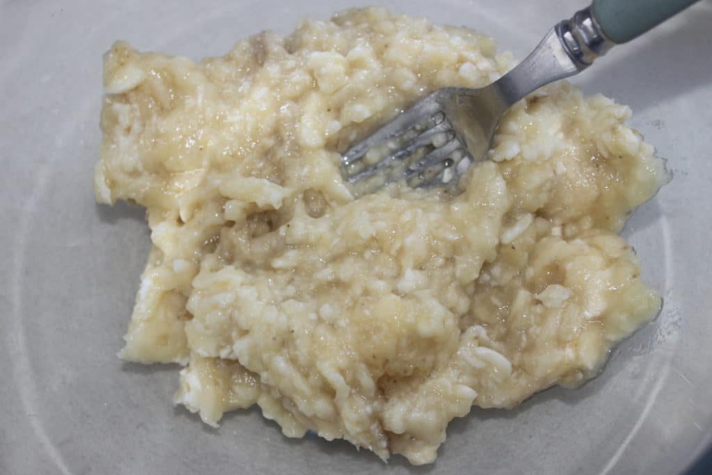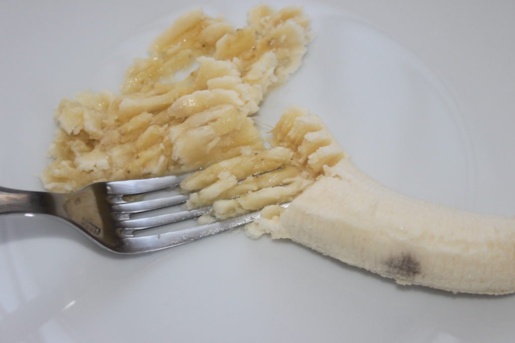 Écrasez la chair de banane à la fourchette.