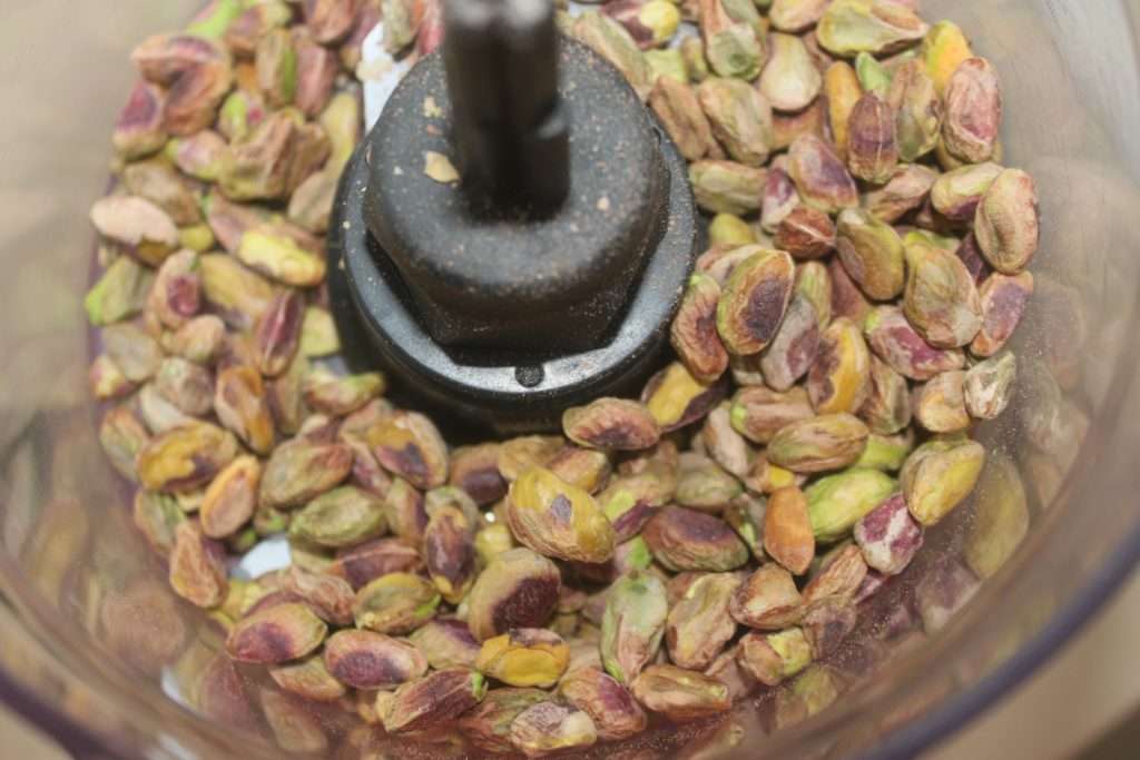 - Commencez par faire griller 250 de pistaches à 170°C pendant 15 minutes.