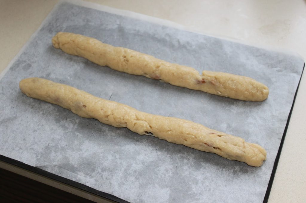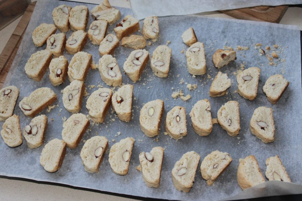 Faites cuire 30 minutes à 170°C. Laissez tiédir 20 minutes puis coupez en tranches d’environ 1cm de large.