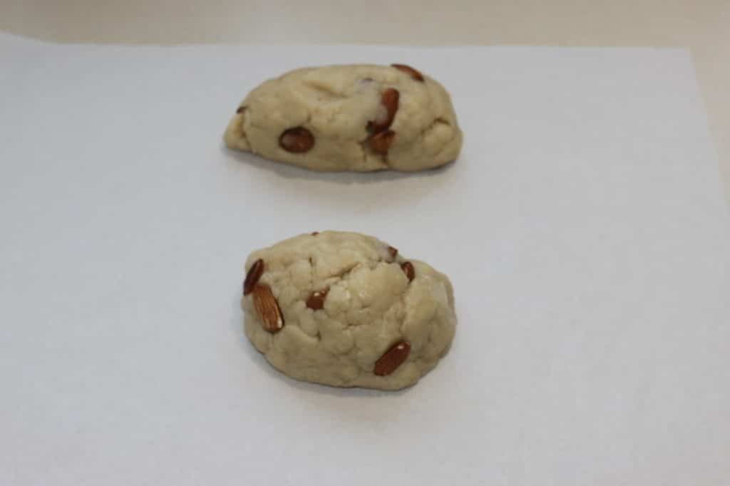 Versez le vin blanc sec (que vous pouvez remplacer par de l’eau), mélangez pour que la pâte se forme puis ajoutez les amandes. Un dernier petit mélange et c’est bon !