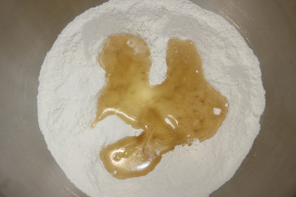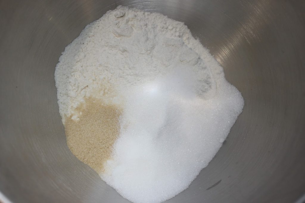 - Placez la farine, la levure, le sucre vanillé, le sucre et le sel dans la cuve de votre robot ou dans un récipient.