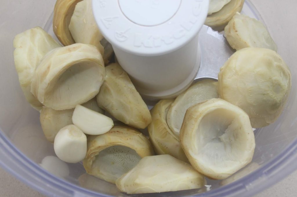 Refroidissez-les sous l’eau froide puis égouttez-les. Placez-les dans le bol de votre mixeur avec les gousses d’ail.