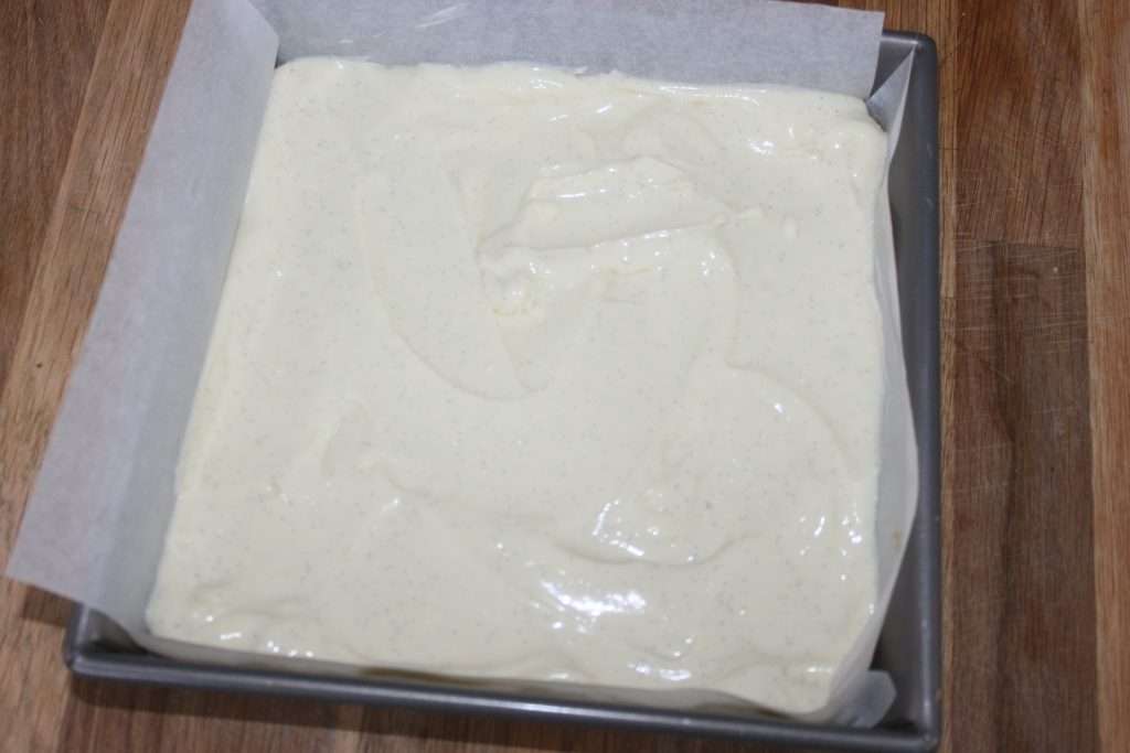 - Puis versez le reste de pâte. J’ai essayé de la répartir équitablement sur la surface.