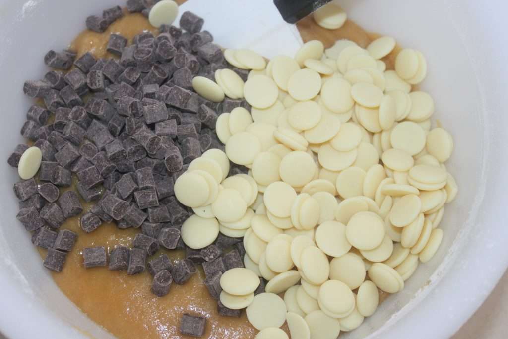 - Toujours un mélange puis versez les chocolats (ici blanc et noir).