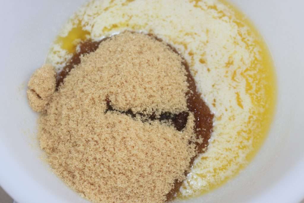 - Mettez dans un récipient le beurre demi-sel fondu, la vergeoise blonde et la vanille liquide.
