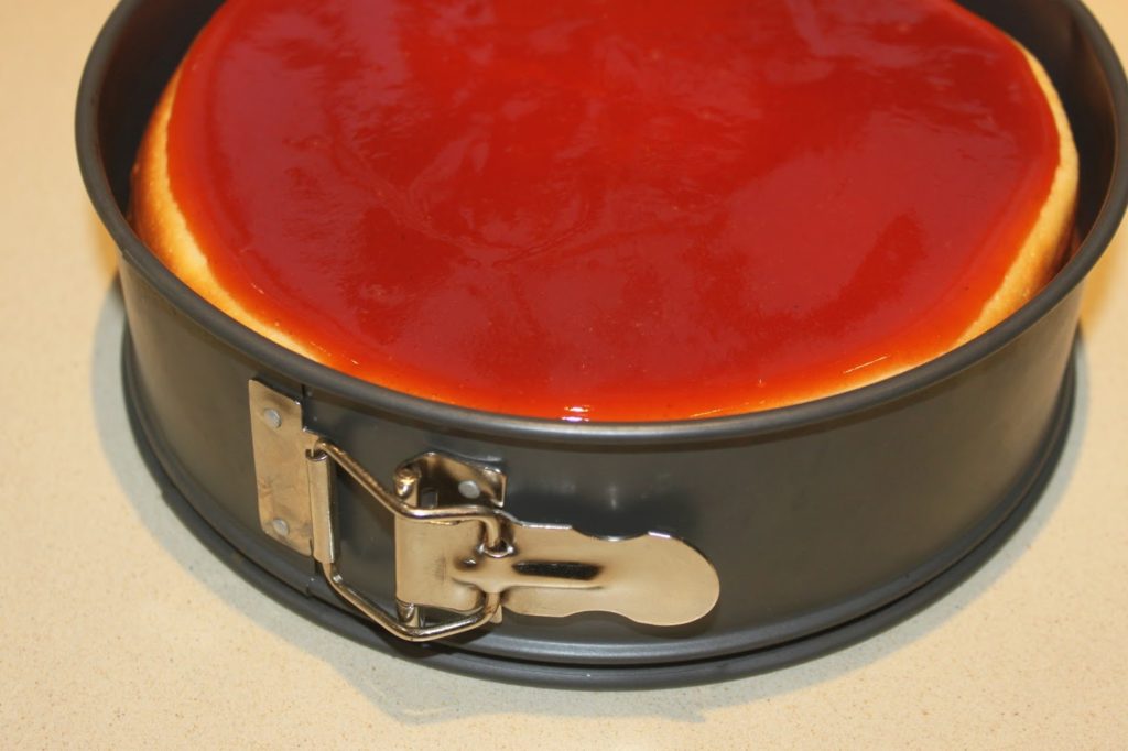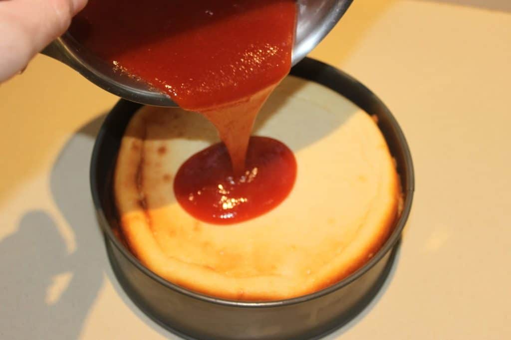 - Étalez à la cuillère jusqu’au bord du cheesecake.