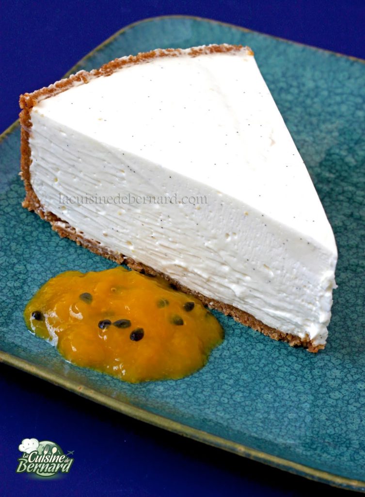 - Il ne reste plus qu’à le servir avec le coulis mangue-passion ! Pour faire de belles tranches, trempez votre couteau dans de l’eau brûlante à chaque découpe.