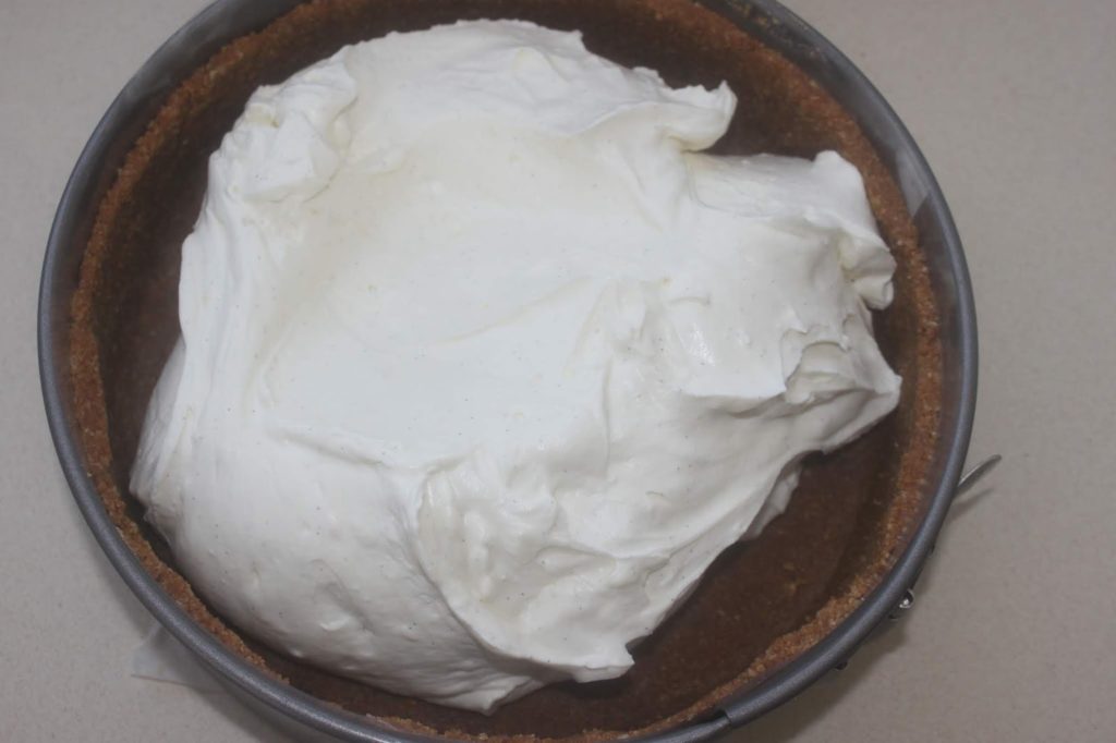 - Et voilà ! Versez dans le moule sur le fond de pâte.
