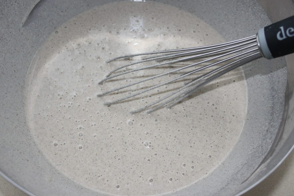 Vous pouvez même passer un coup au mixeur plongeant pour faire plus de bulles. Cela va disperser l’huile sous forme de micro gouttelettes.