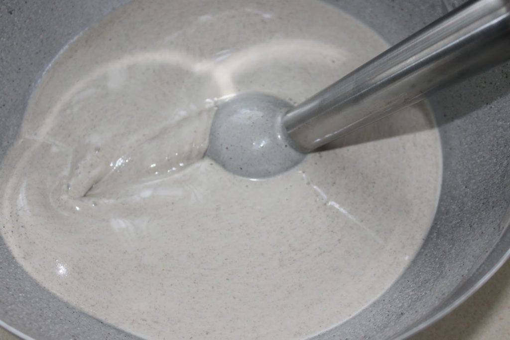 - Vous pouvez même passer un coup au mixeur plongeant pour faire plus de bulles. Cela va disperser l’huile sous forme de micro gouttelettes.