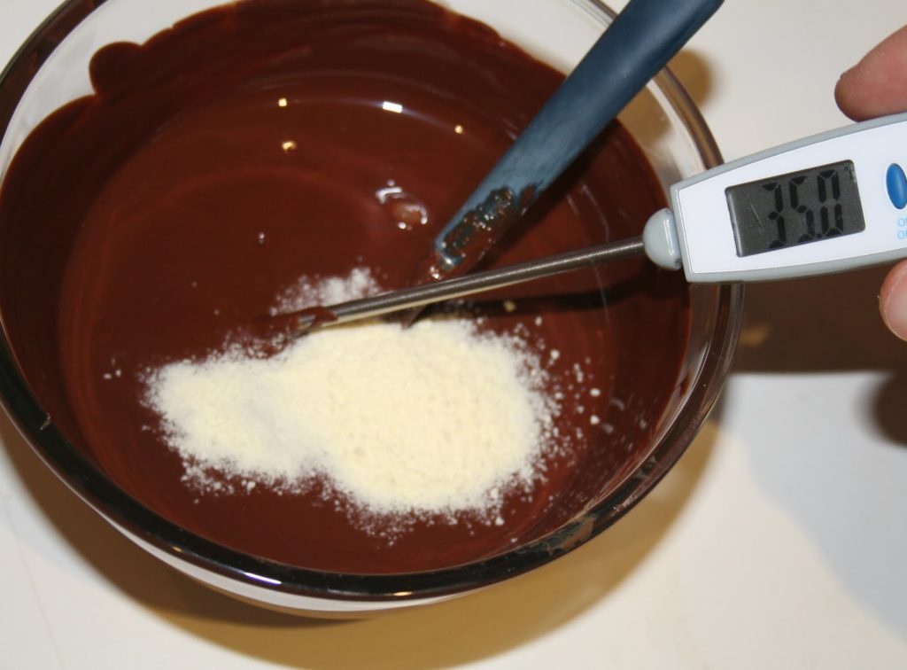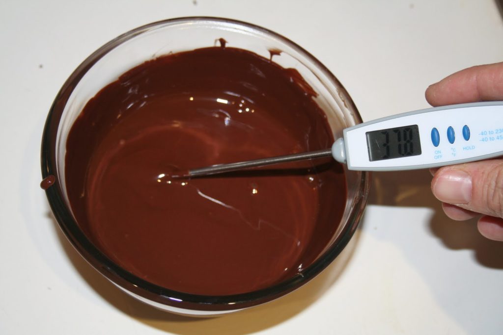 La première est de respecter scrupuleusement une courbe de température, en faisant d’abord fondre le chocolat à une certaine température, qui dépend de quel type de couverture on parle.