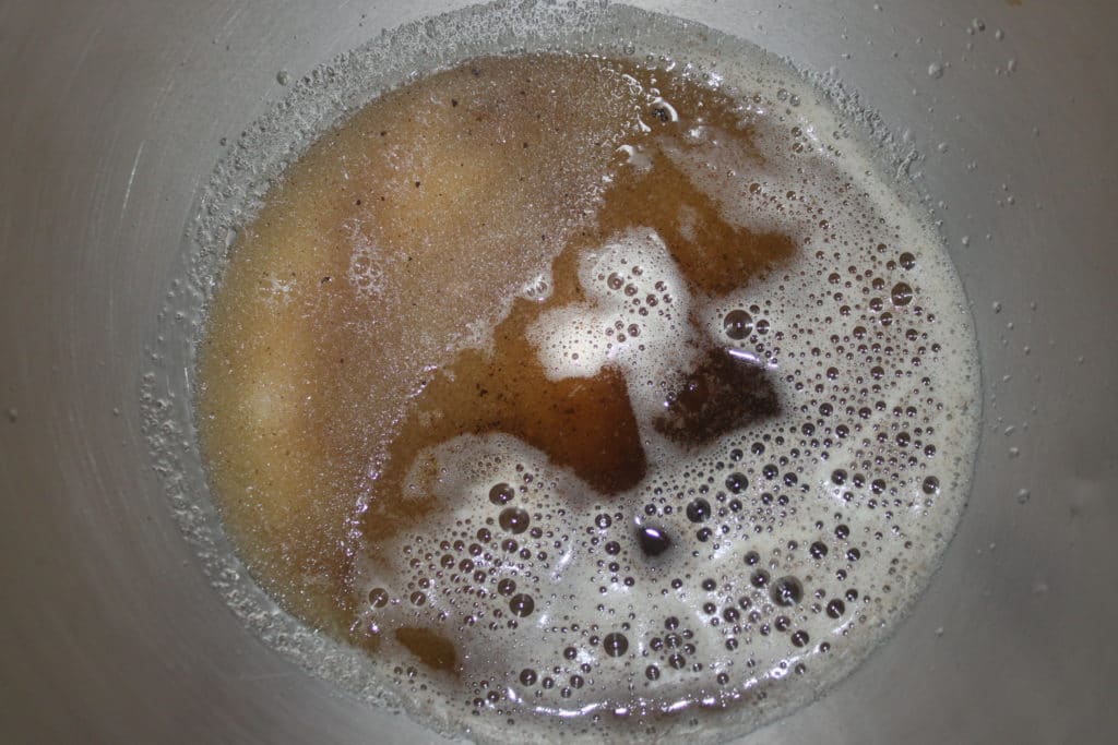 - Faites tout d’abord cuire le beurre à la casserole pour avoir un beurre noisette bien coloré.