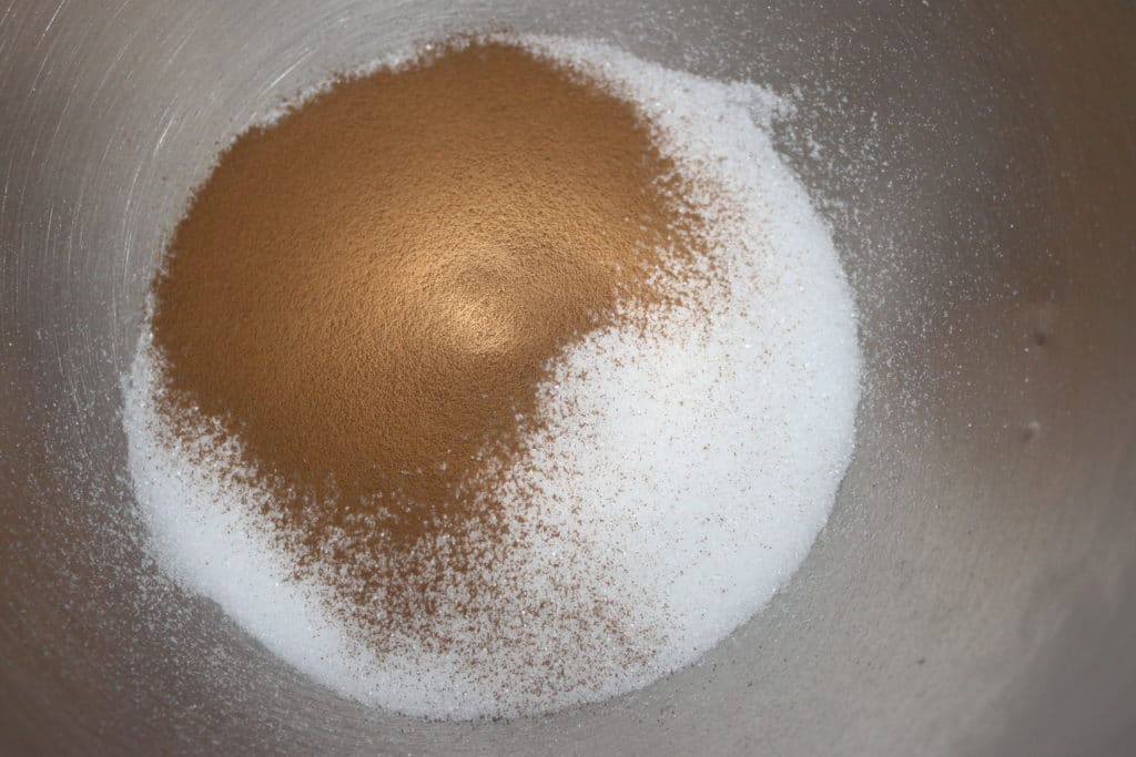 - Versez dans un récipient, le sucre, le sel et le café en poudre instantané.